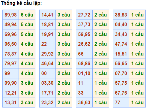 Cầu lô chạy 8 ngày qua (cầu dài nhất)