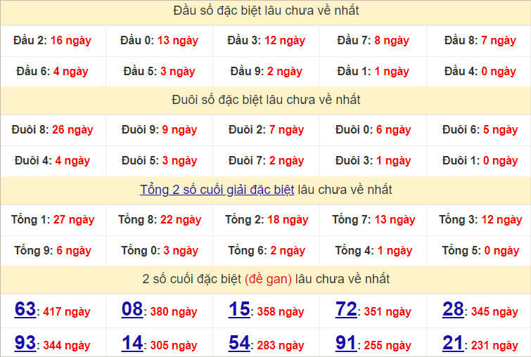 Thống kê hai số cuối giải đặc biệt miền Bắc ngày 28/7