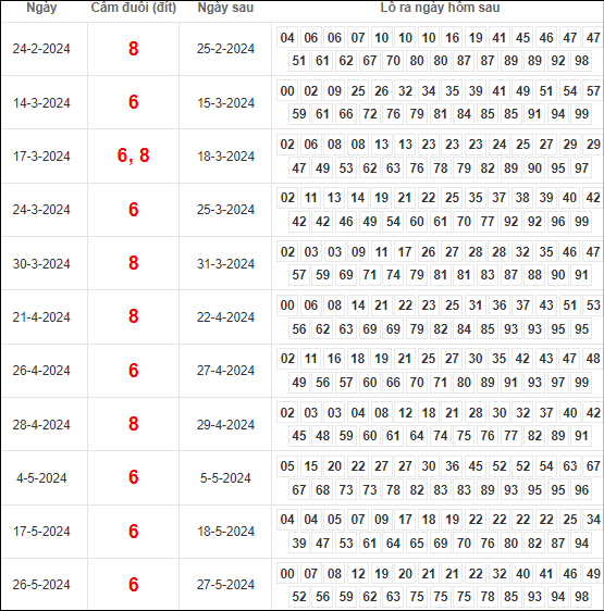 Dàn lô hôm nay miền Bắc bất bại ngày 29/5/2024