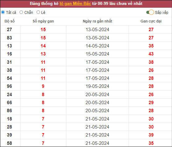 ⭐️ Lô gan MB lâu ra nhất: 27 – 83 – 13 – 16 – 31