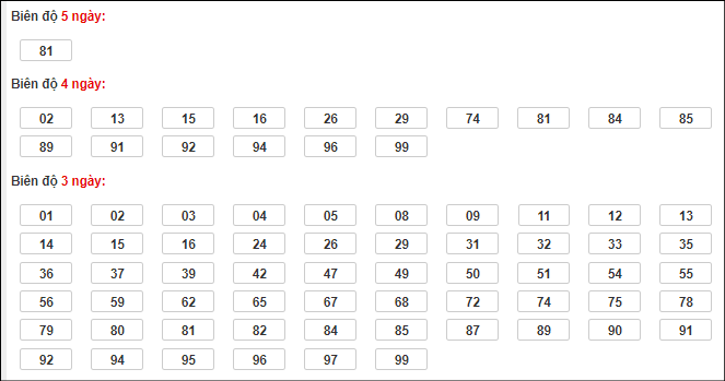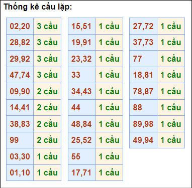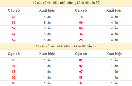 Cặp lô 00, 02, 59, 72, 99 có độ dài 3 ngày.
