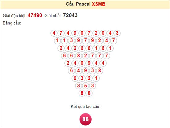 ⭐️ Kết quả từ soi cầu Pascal là cặp song thủ lô khung 3 ngày: 88