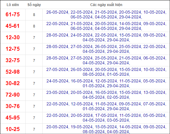 Cầu lô chạy 5 ngày qua (cầu dài nhất)