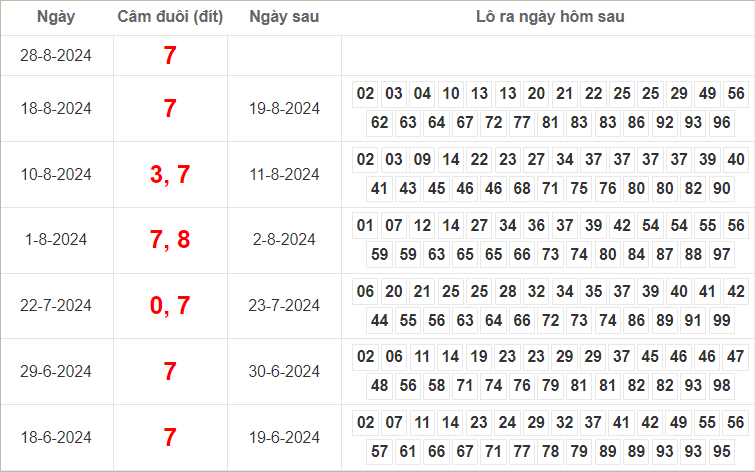 Dàn lô hôm nay miền Bắc bất bại ngày 29/8/2024