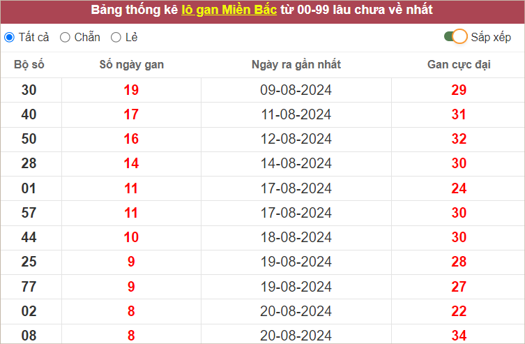 ⭐️Lô gan MB lâu ra nhất: 30 – 40 – 50 – 28 – 01
