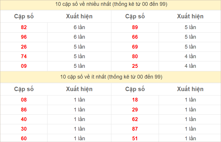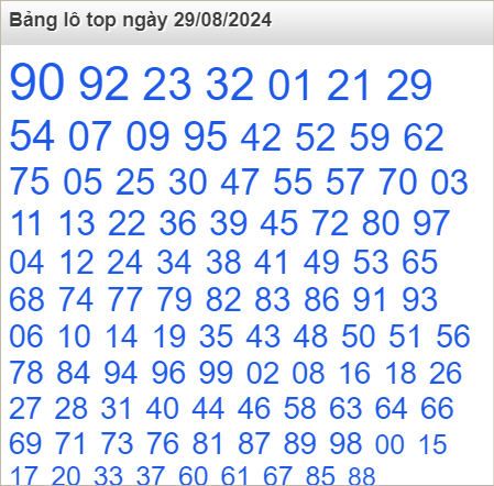 Các cặp số nóng nhất hôm nay: 90 – 92 – 23 – 32 – 01