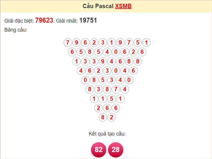 Kết quả từ soi cầu Pascale là cặp số may mắn: 82 28