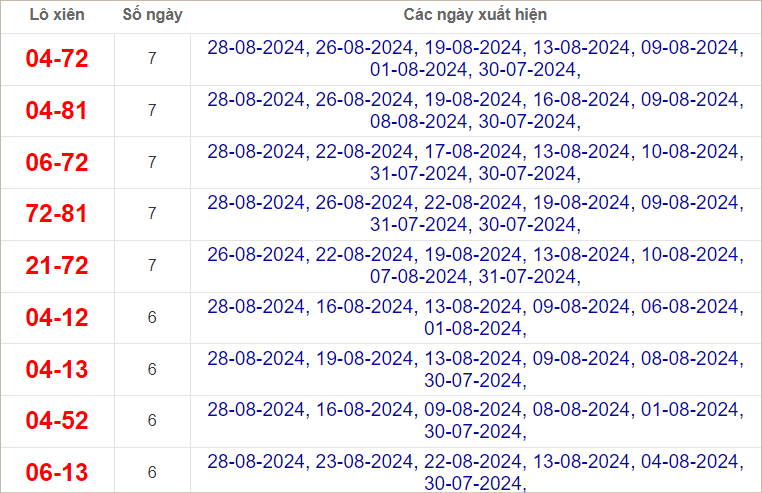 THỐNG KÊ LÔ TÔ KẾT QUẢ XSMB NGÀY 28-8-2024