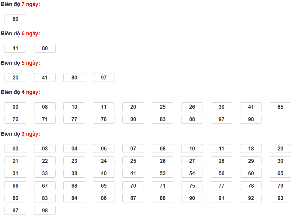 Cặp lô 33, 43, 79 có độ dài 3 ngày
