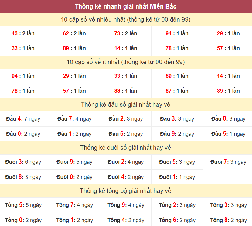 Thống kê lô tô miền Bắc hôm nay 3/6