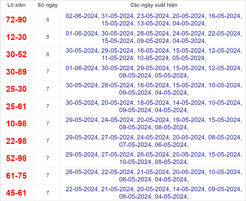 Cầu lô chạy 7 ngày qua (cầu dài nhất)