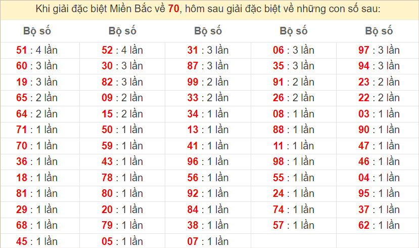 Các cặp số nóng nhất hôm nay: 61 – 79 – 62 – 70 – 97