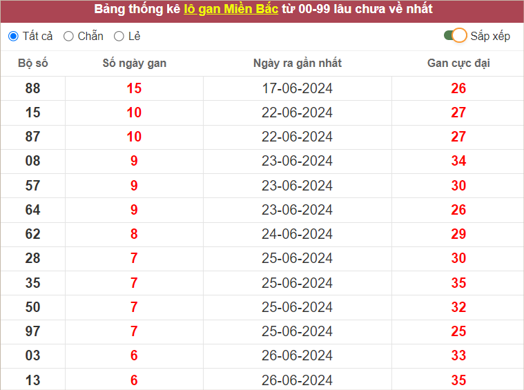 ⭐️ Lô gan miền Bắc lâu ra nhất: 88 – 15 – 87 – 08 – 57
