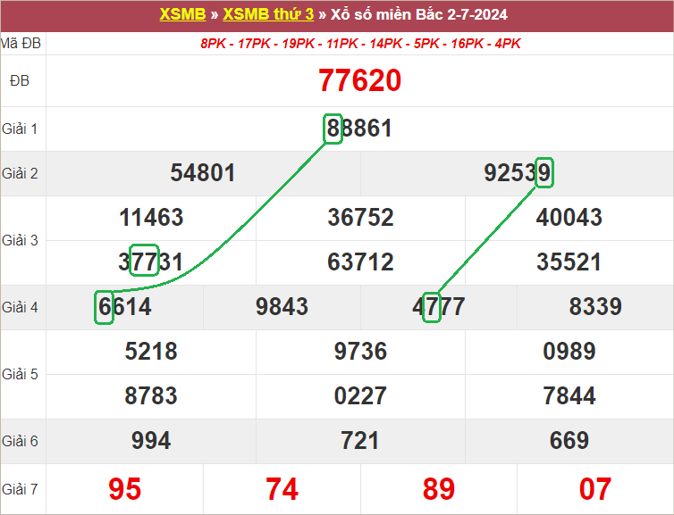 Xem lại bảng KQXSMB ngày 2-7-2024 hôm qua