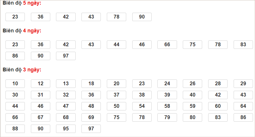 Cặp lô 72, 79 có độ dài 3 ngày.