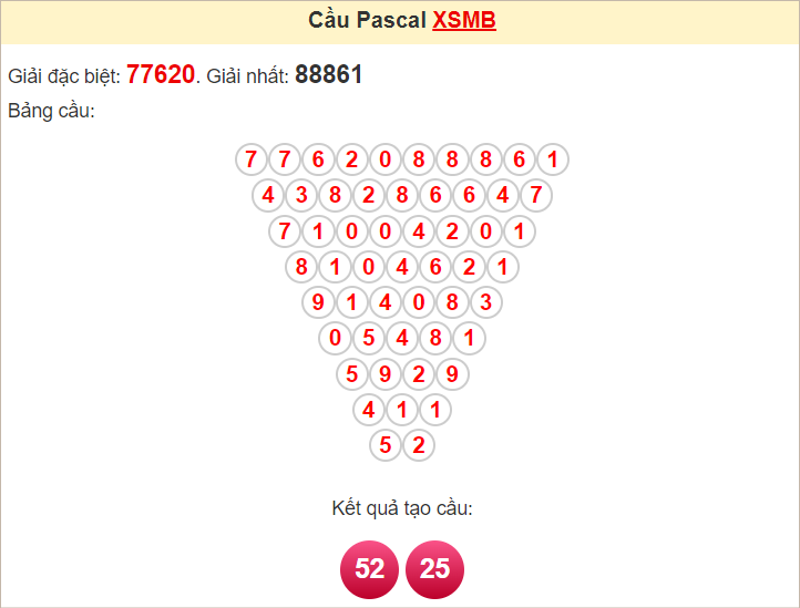 Kết quả từ soi cầu Pascale là cặp số may mắn: 25 52