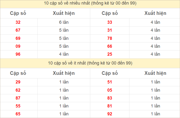⭐️ Thống kê tần suất lô về nhiều trong 30 ngày qua: 66 (17 lần), 59 (15 lần), 32 (14 lần), 89, 96 (13 lần), 04, 16, 23 (12 lần)