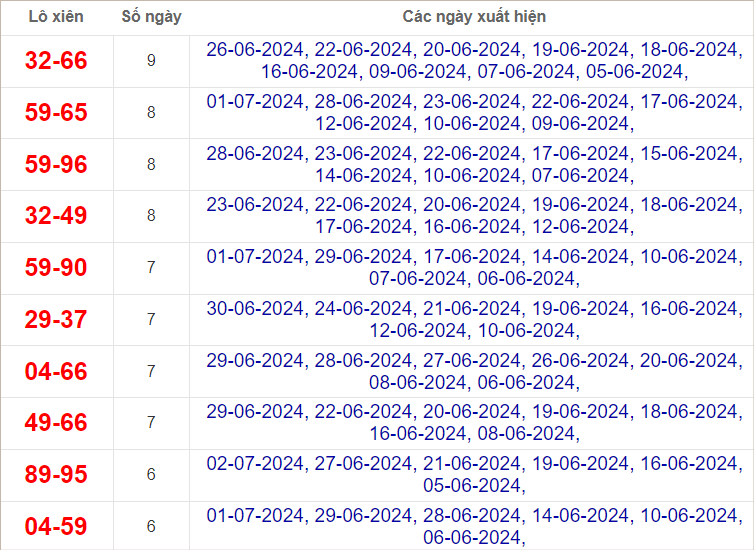 Dàn lô hôm nay miền Bắc bất bại ngày 3/7/2024