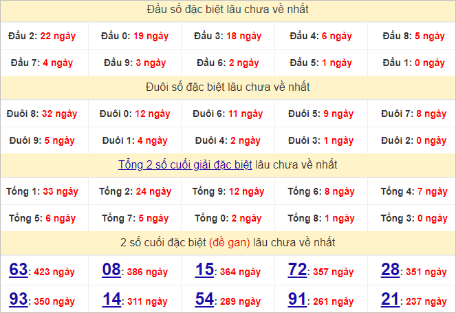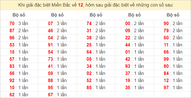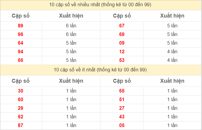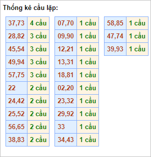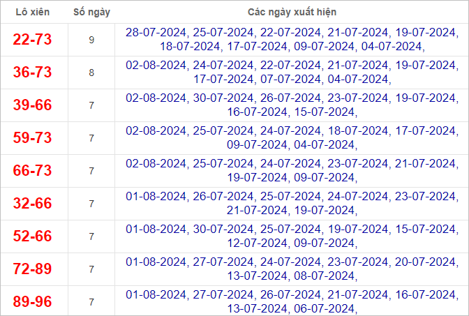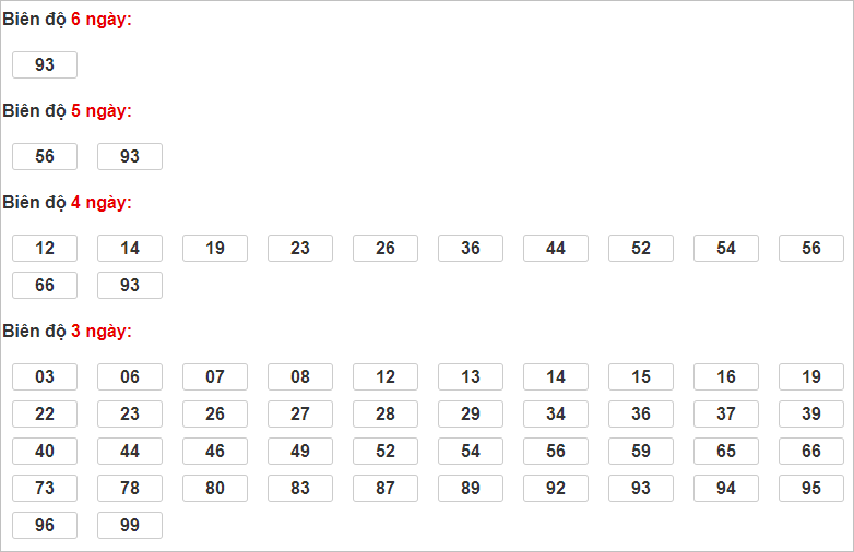 Cặp lô 20, 29, 33, 53, 60, 69, 80, 89 có độ dài 3 ngày.