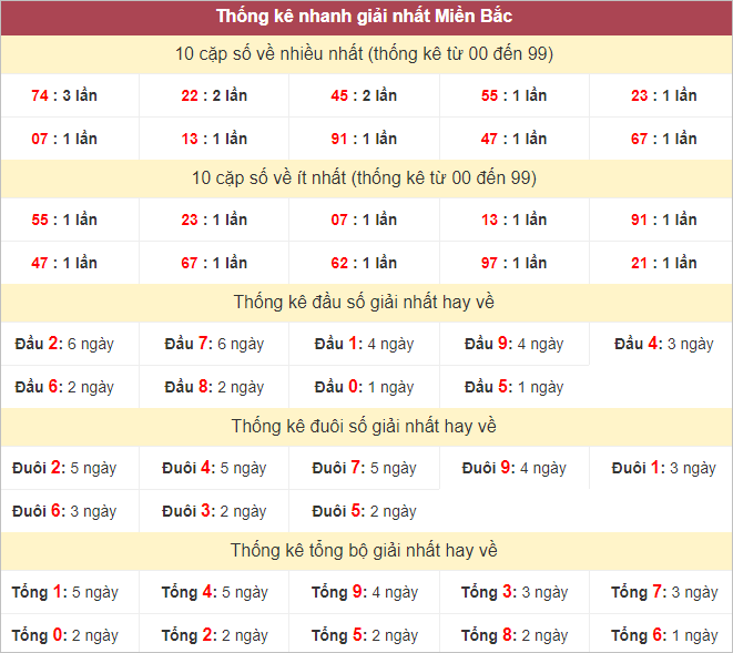 Thống kê lô tô miền Bắc hôm nay 3/8