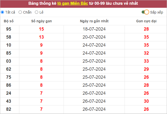 ⭐️Thống kê lô gan miền Bắc lâu ra nhất: 95 – 58 – 10 – 85 – 03