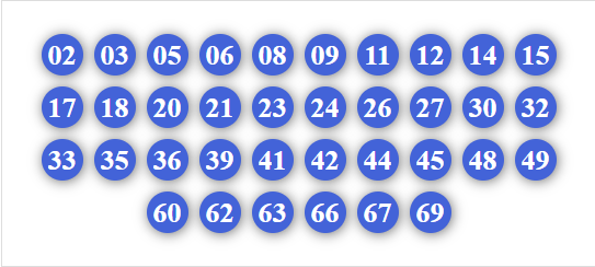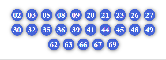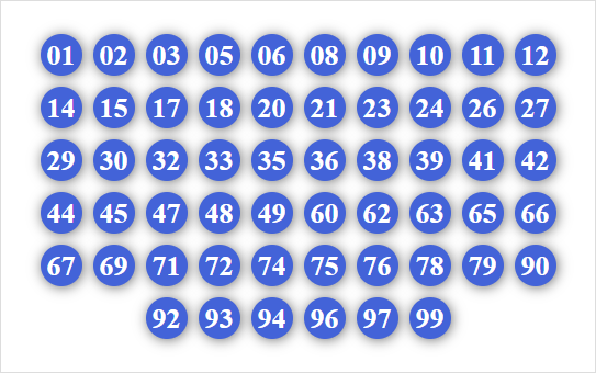 30, 31, 32, 34, 35, 36, 37, 38, 39, 60, 61, 62, 63, 64, 65, 67, 68, 69, 70, 71, 72, 73, 74, 75, 76, 78, 79, 80, 81, 82, 83, 84, 85, 86, 87, 89