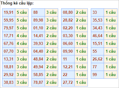 Cặp lô 18, 39, 49, 58, 68, 79, 85, 89 có độ dài 3 ngày.