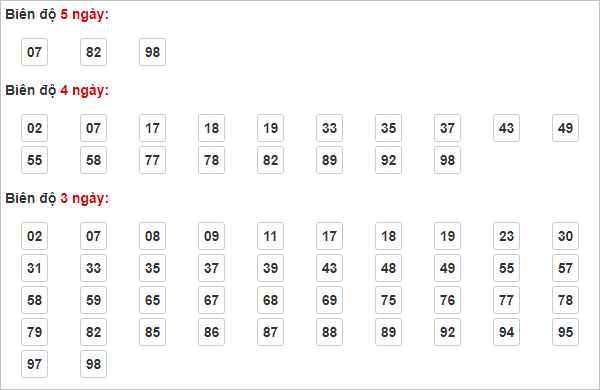 ⭐️ Lô tô 2 số, xiên 2, xiên 3: 07 – 82 – 98