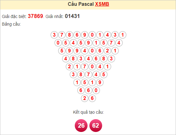 Kết quả từ soi cầu Pascale là cặp số may mắn: 26 62
