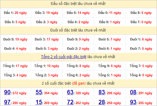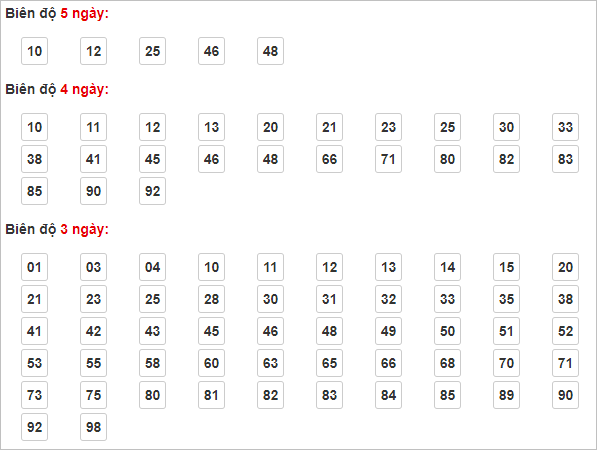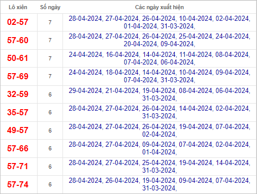 Cặp lô 15, 23, 30, 42, 52, 53, 64, 65, 74, 75, 80, 82, 85 có độ dài 2 ngày.