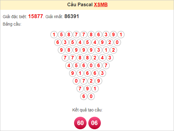Kết quả từ soi cầu Pascale là cặp số may mắn: 06 60