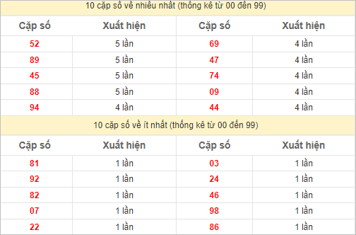 Cặp lô 10 (vị trí ghép cầu 9-97), 12 (9-106), 25 (59-79), 46 (28-63), 48 (31-49)