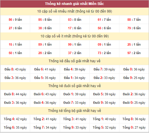 Thống kê hai số cuối giải đặc biệt miền Bắc ngày 30/4/2024