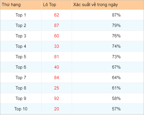 Các cặp số nóng nhất hôm nay: 62 – 87 – 60 – 33 – 81