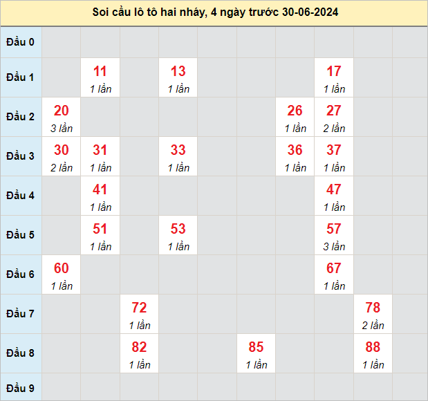 Soi cầu lô 2 nháy ngày 30/6/2024 hôm nay: