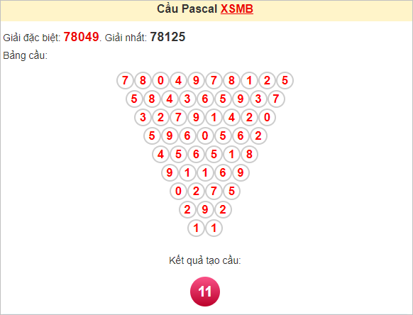 Kết quả từ soi cầu Pascale là cặp số may mắn: 11