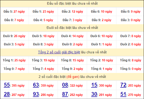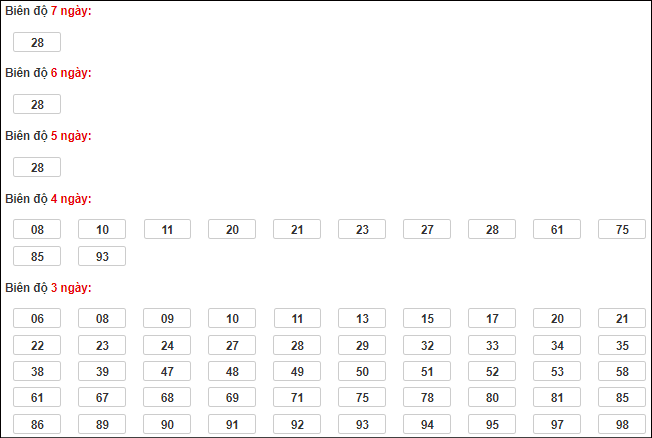 Cặp lô 15, 48, 51 có độ dài 3 ngày.