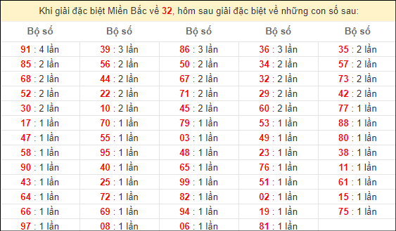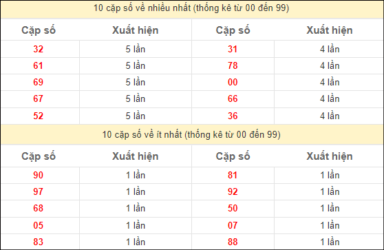 Các cặp số nóng nhất hôm nay: 95 – 59 – 32 – 60 – 77