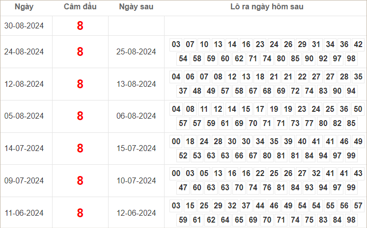 Dàn lô hôm nay miền Bắc bất bại ngày 31/8/2024