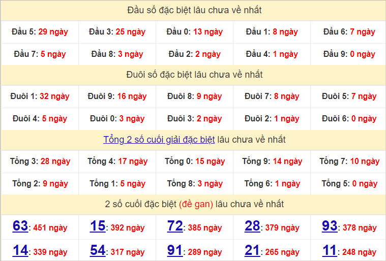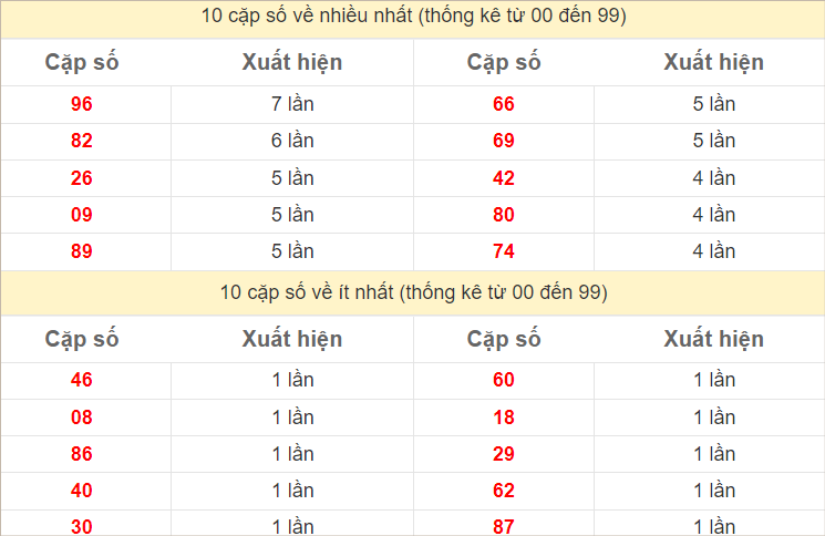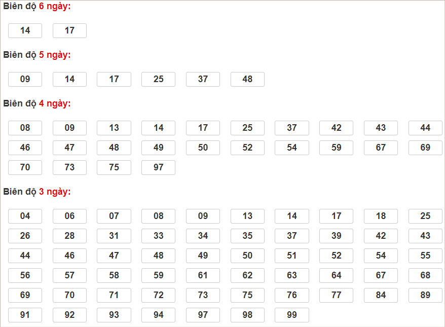 Cặp lô 14, 42, 47, 49, 61, 69 có độ dài 3 ngày.