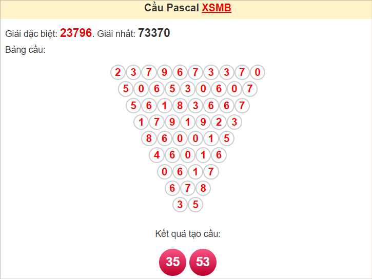 Kết quả từ soi cầu Pascale là cặp số may mắn: 35 53