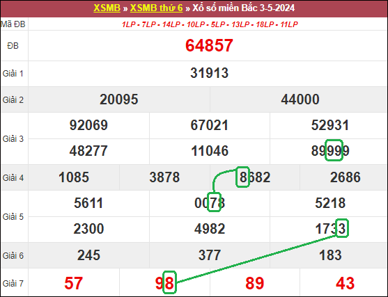 Xem lại bảng KQXSMB ngày 3/5/2024 hôm qua