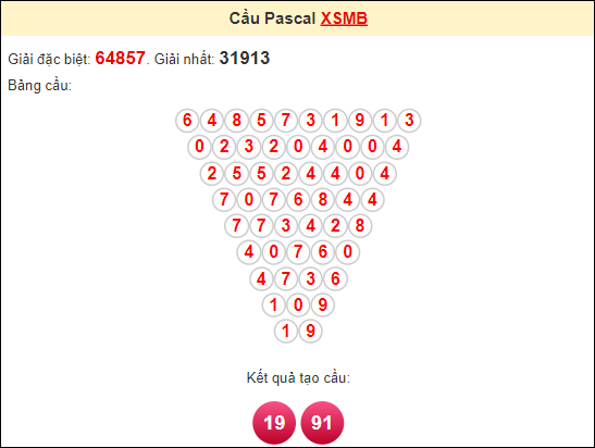 Kết quả từ soi cầu Pascale là cặp số may mắn: 19 91