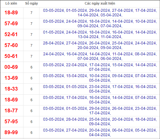 Dàn lô hôm nay miền Bắc bất bại ngày 4/5/2024