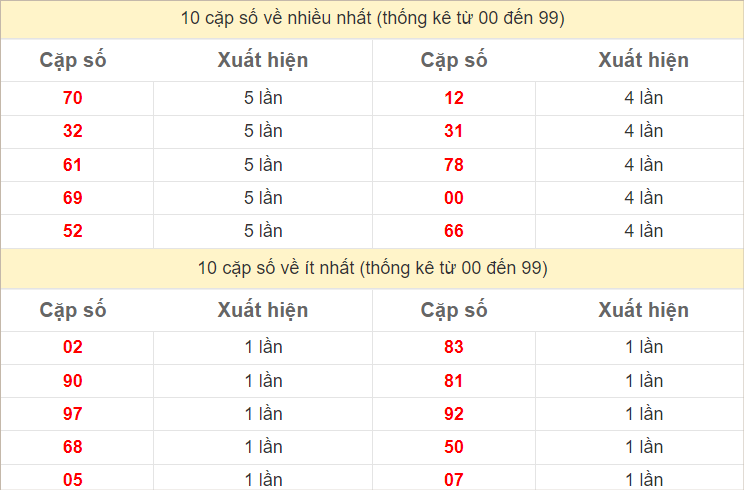 ⭐️ Thống kê tần suất các cặp lô về nhiều trong 10 ngày gần đây: 12 (10 lần), 80, 92 (7 lần), 32, 52, 70, 75 (6 lần), 08 (5 lần)