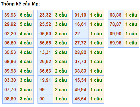 Cầu lô chạy 8 ngày qua (cầu dài nhất)