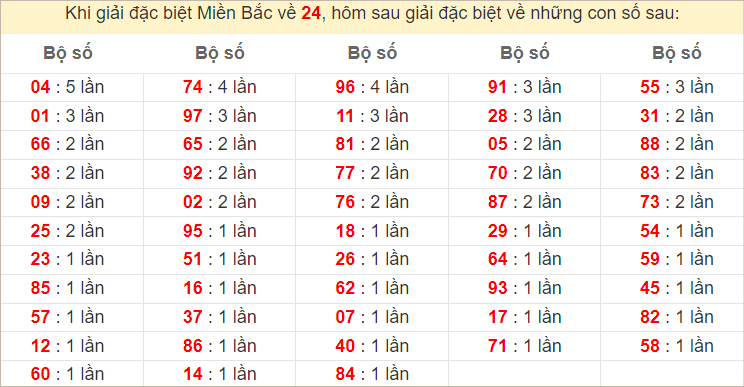 Thống kê hai số cuối giải đặc biệt miền Bắc ngày 4/6