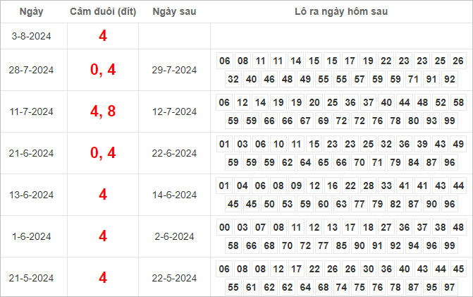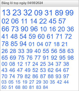 Dàn lô hôm nay miền Bắc bất bại ngày 4/8/2024