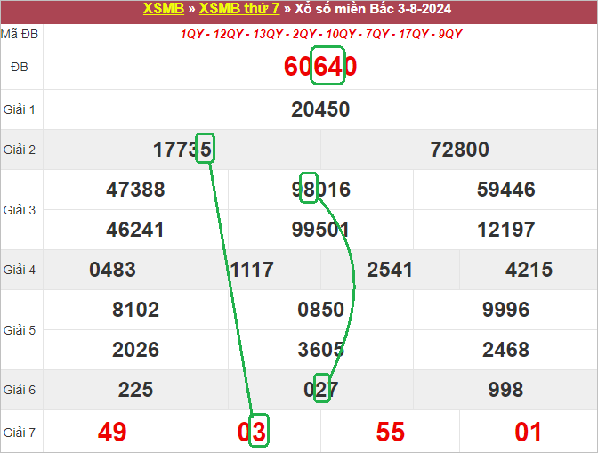 Xem lại bảng KQXSMB ngày 3-8-2024 hôm qua