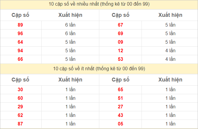 ⭐️ Thống kê tần suất các cặp lô về nhiều trong 10 ngày gần đây: 96 (7 lần), 22, 23, 32, 66, 72, 92 (6 lần), 13 (5 lần)